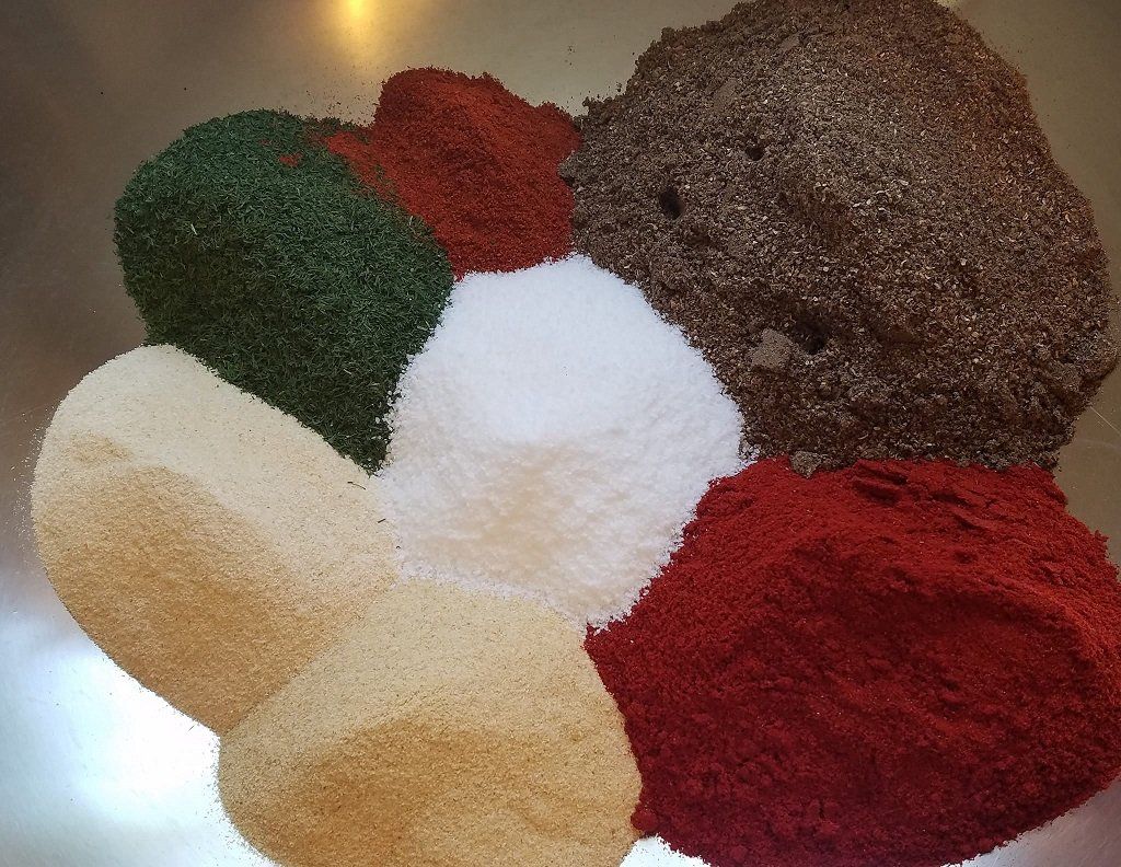 Ingredients: Salt, Pepper, Paprika, Onion, Garlic, and other Spices and Herbs.